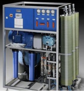 反滲透(RO膜系統)是60年代發展起來的一項新的薄膜分離技術,是依靠反滲透膜在壓力下使溶液中的溶劑與溶質進行分離的過程。對于除鹽系統來說,預處理水進入反滲透膜,在高壓力的作用下,小分子(如水分子)透過半透膜進入淡水室,大分子(如 Ca2+、Mg2+、Na+、SO42-、Cl-、HCO3-、HSiO3- 等離子)則留在濃水室,后排放。反滲透系統控制自動控制,根據程序進行過濾產水、加藥、停機沖洗。